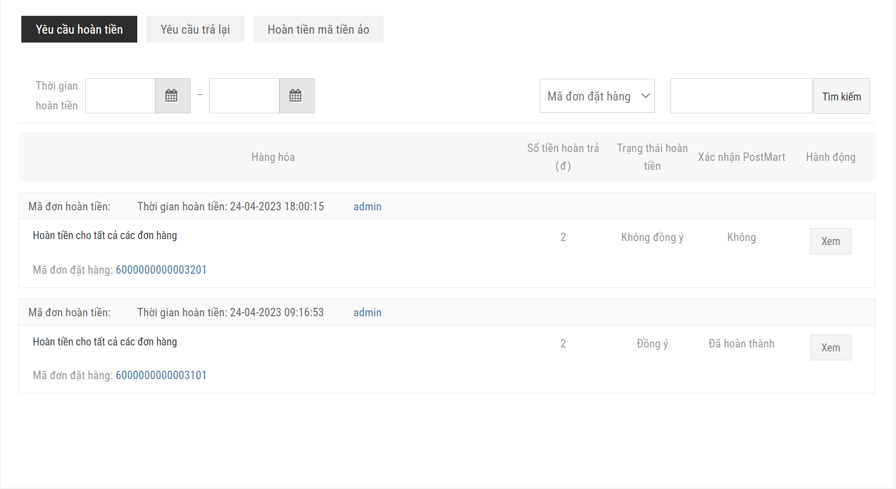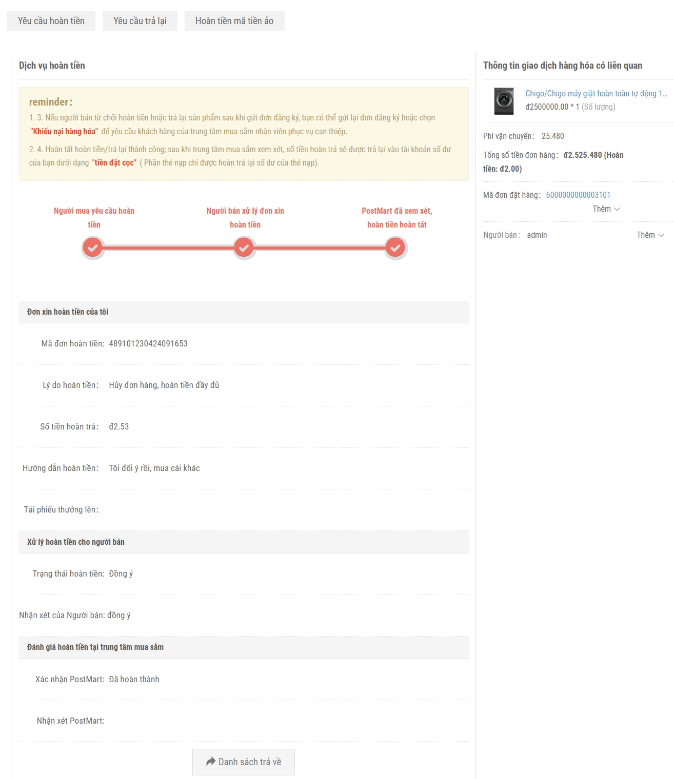 Chức năng giúp khách hàng quản lý các yêu cầu và tiến trình hoàn lại tiền đơn hàng của mình