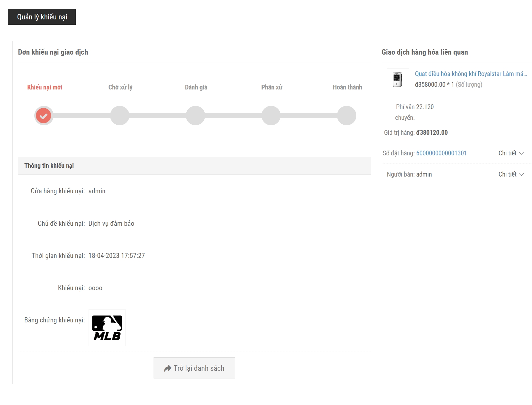 Chức năng giúp khách hàng quản lý các khiếu nại về sản phẩm